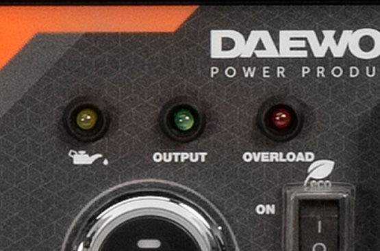 Индикатор выходного напряжения. Горит зеленым при нормальной работе генератора. Индикатор перегрузки. Не горит при нормальной работе генератора. Индикатор низкого уровня масла. Не горит при нормальной работе генератора.