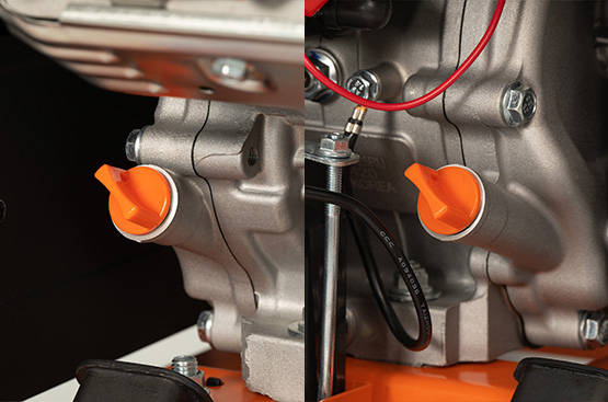 Данная модель имеет две маслозаливных горловины, расположенные с разных сторон двигателя. Замену масла можно производить с любой стороны.